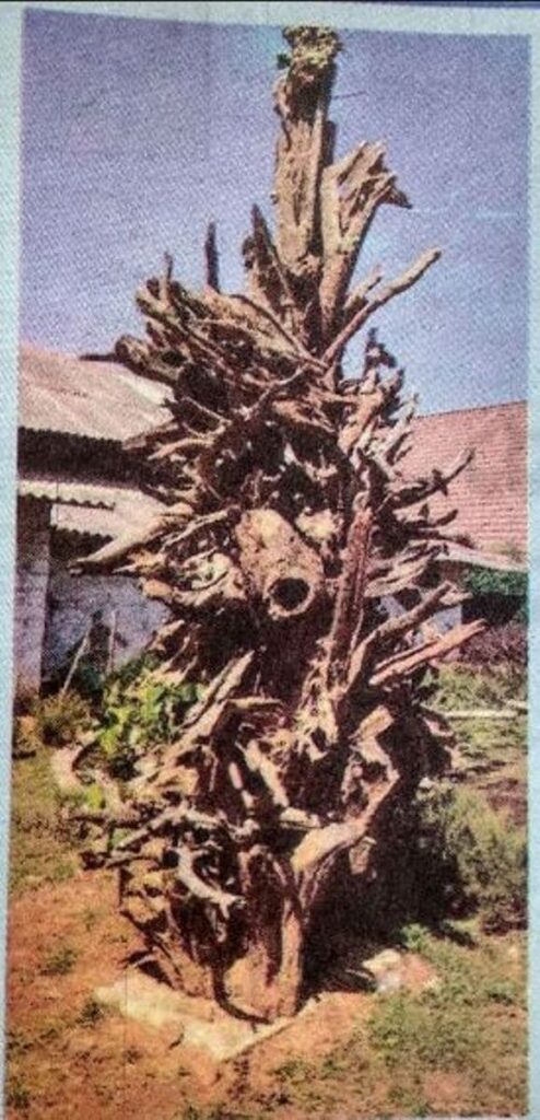 ಕಾಷ್ಠದಿಂದ ಕಲೆ ಅಪರೂಪದ ಕಲಾಕೃತಿಯಂತೆ ಕಾಣುವ ಈ ವಸ್ತು ನಿರ್ಮಾಣವಾದದ್ದು ಬರಡು ಬಿದ್ದ ಮರದ ಬೇರುಗಳಿಂದ ಒಣಗಿ ನಿಂತ ಮರದ ಬೇರುಗಳನ್ನೇ ಕೀಳಿಸಿ, ಕೊಂಚ ಆಕರ್ಷಕವೆನ್ನಿಸುವಂತೆ ಜೋಡಿಸಿದಾಗ
