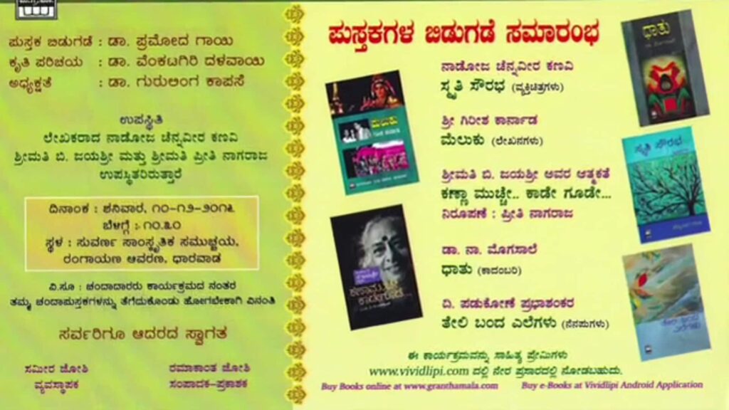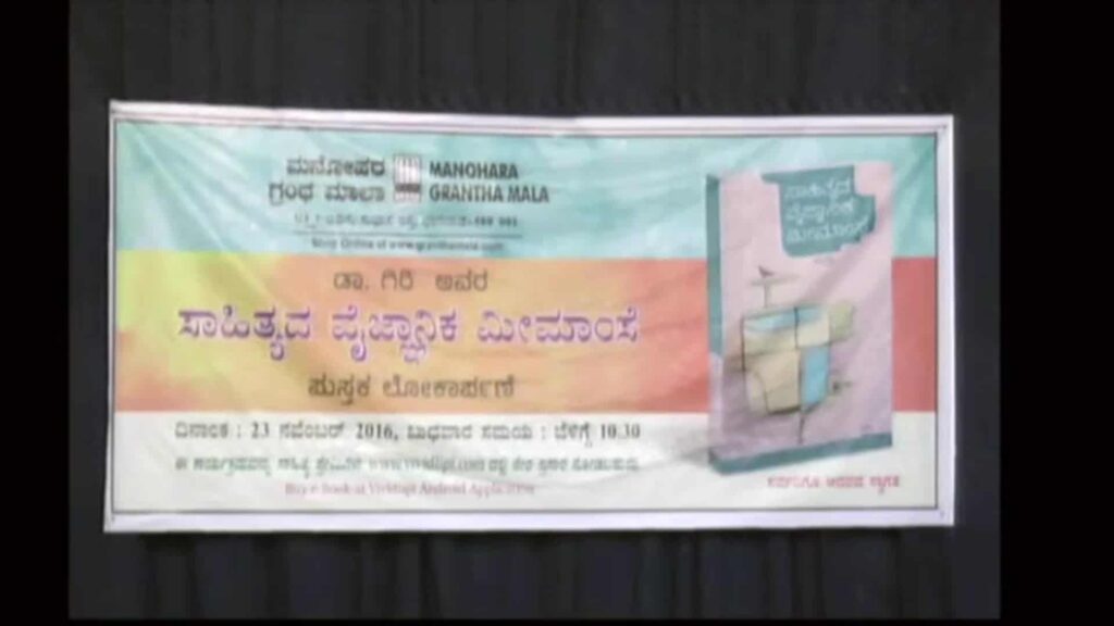 ಬುಧುವಾರ, 23 ನವೆಂಬರ್ 2016 ರಂದು ‘ಬೆಳಿಗ್ಗೆ’ 10.30ಕ್ಕೆ ಧಾರವಾಡದ ಮನೋಹರ ಗ್ರಂಥ ಮಾಲಾದ ಡಾ. ‘ಗಿರಿ’ಯವರ ‘ಸಾಹಿತ್ಯದ ವೈಜ್ಞಾನಿಕ ಮೀಮಾಂಸೆ’ ಗ್ರಂಥದ ಲೋಕಾರ್ಪಣೆ ಸಮಾರಂಭ ಧಾರವಾಡದಲ್ಲಿ